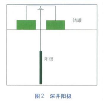 當(dāng)?shù)乇砜臻g小,不能采用分布式陽極或地表土壤電阻率太高時,經(jīng)常采用深井陽極(見圖2)。深井陽極的優(yōu)點:占地面積??;對其他保護結(jié)構(gòu)的影響小;陽極接地電阻?。辉馄茐牡目赡苄?;對地表保護結(jié)構(gòu)或井套管的保護電流分布均勻;陽極接地電阻受季節(jié)變化影響小。