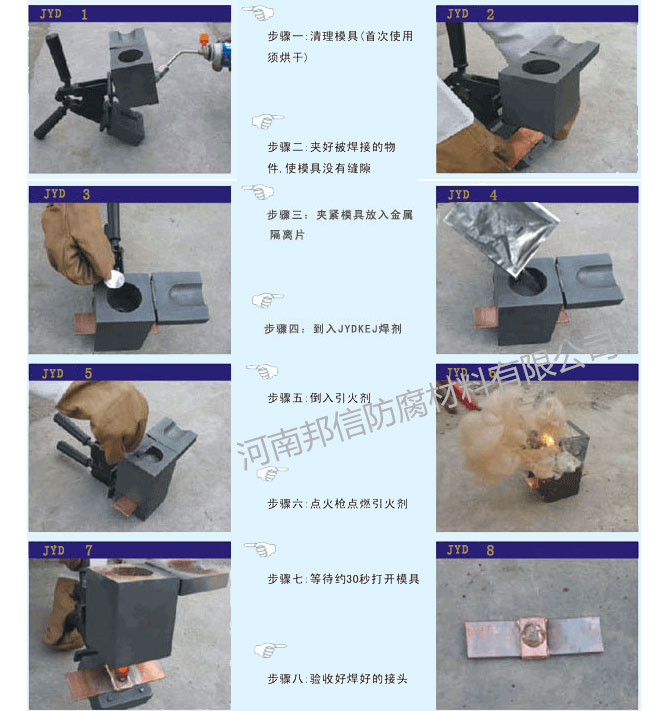 采用鋁熱焊,焊點(diǎn)離管道焊縫大于100mm,施工步驟如下: