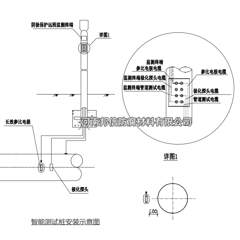 陰極保護遠(yuǎn)程監(jiān)測智能測試樁安裝和接線示意圖